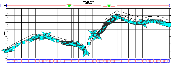 Wyświetlony zostanie pasek Narzędzia układu profilu. Zauważmy, że wzdłuż profilu nie są wyświetlane żadne uchwyty edycyjne, a większość formantów na pasku narzędzi Narzędzia układu profilu jest szara i niedostępna. Ten profil ma charakter dynamiczny. Jest on połączony z wartościami rzędnych powierzchni, w związku z czym żadnej części linii nie można edytować.