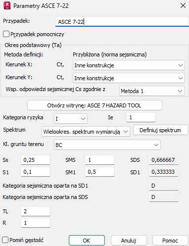 Aby przeprowadzić analizę sejsmiczną według reguł podanych w tej normie, należy zdefiniować następujące parametry.