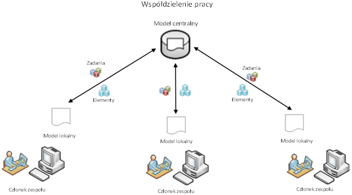 Współdzielenie pracy jest metodą projektowania, która umożliwia wielu członkom zespołu jednoczesną pracę nad tym samym modelem projektu.