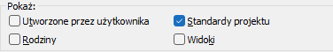- W oknie dialogowym Zadania w polu Pokaż wybierz wyłącznie opcję Standardy projektu.