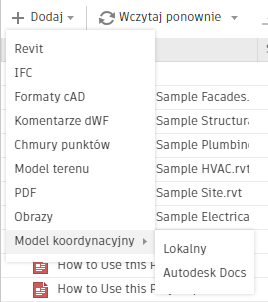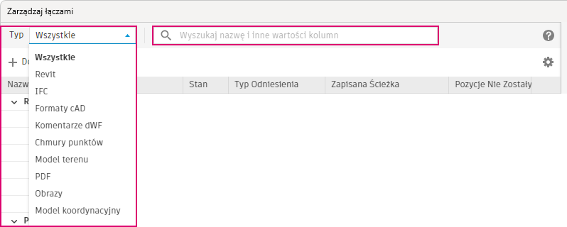 Użyj przycisku Dodaj, aby przenieść dane odniesienia do programu Revit.