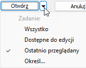 Aby otworzyć zadania w oknie dialogowym Otwórz