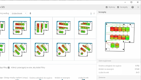 Po utworzeniu badania przy użyciu dodatku projektowanie generatywne w programie Revit eksploruj wyniki, aby znaleźć taki, który najlepiej rozwiązuje dany problem projektowy, lub użyć wyniku jako podstawy dla nowego badania.