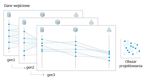 Generuj projekty zoptymalizowane pod kątem Twoich celów. projektowanie generatywne uruchamia wiele generacji projektu. Każda kolejna generacja ewoluuje dzięki uwzględnieniu wcześniejszych wyników.