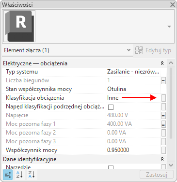 - Na palecie Właściwości kliknij przycisk znajdujący się na prawo od wartości klasyfikacji obciążenia.