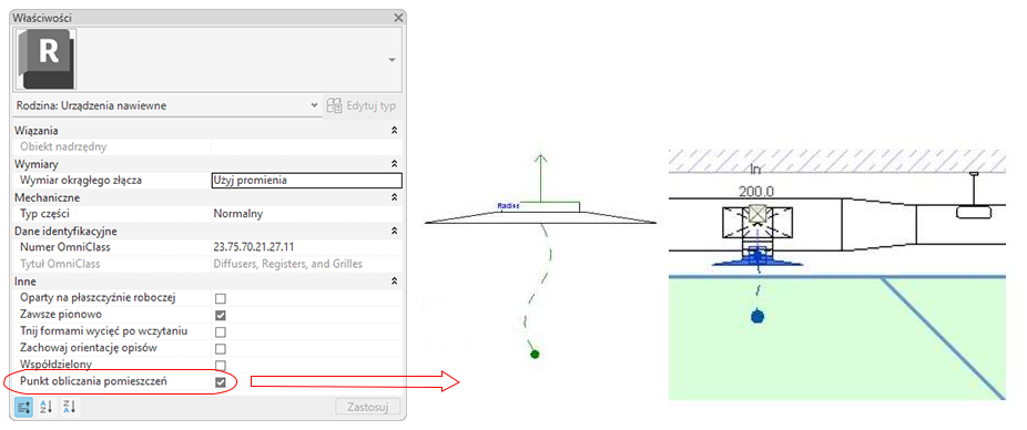 edytować rodzinę opraw oświetleniowych, aby włączyć punkt obliczeniowy pomieszczenia, a następnie przejść do położenia punktu obliczeniowego, znajdującego się wewnątrz pomieszczenia. W edytorze rodzin na palecie Właściwości włącz opcję Punkt obliczeniowy pomieszczenia. Edytuj położenie punktu obliczeniowego pomieszczenia, tak aby znajdował się wewnątrz pomieszczenia.