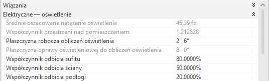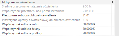 Dodatkowe wzory służące do obliczenia średniego oszacowanego natężenia oświetlenia przestrzeni są następujące: