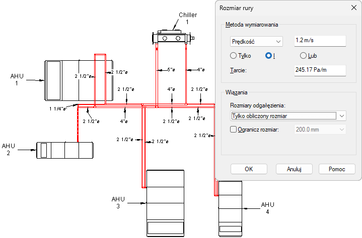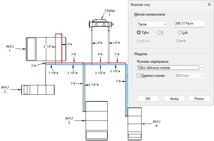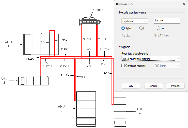 Następujące obrazy pokazują wyniki różnych metod wymiarowania systemu wodociągowego.