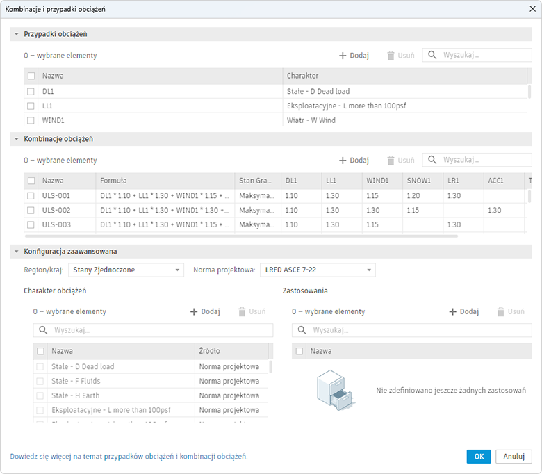Aby uzyskać dodatkowe informacje, zobacz Przypadki i kombinacje obciążeń (2025.3).