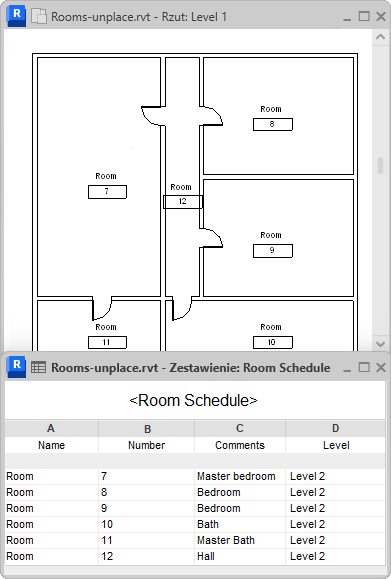 Utworzone pomieszczenia można usuwać z modelu budynku, tymczasowo lub na stałe.