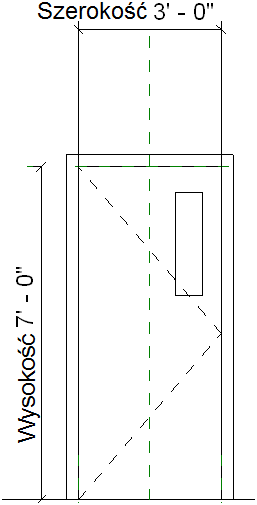 Po dodaniu prostokątnego okna do drzwi pożarowych, które mają wymiar szerokości z etykietą, nie zwymiarowano okna.
