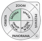 Podczas przeciągania kursora myszy nad modelem obok wyświetlana jest sfera (punkt obrotu). Sfera oznacza, że punkt znajdujący się poniżej kursora będzie centrum bieżącego widoku po zwolnieniu przycisku myszy. Ta operacja skutkuje wyśrodkowaniem modelu w sferze — będzie to punkt, dookoła którego model będzie się obracać.