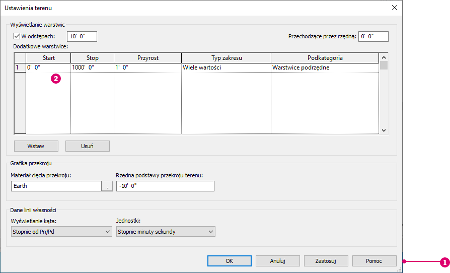 . W przypadku powiększenia okna dialogowego można zmienić dodatkowe ustawienia warstwic