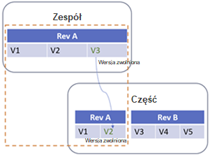 Oto przykład, w którym mamy zespół i część w wersji A.