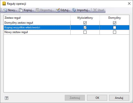 Uwaga: domyślnego zestawu reguł nie można modyfikować ani usunąć.