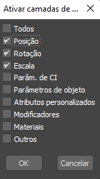 Por padrão, os rastreamentos Posição, Rotação e Dimensionamento estão ativados. Ainda é possível animar os atributos diferentes dos ativados nesta caixa de diálogo, mas eles não estão sujeitos a controlar pelo controlador Camada.