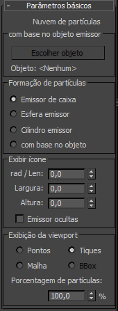 Permite que você selecione um objeto de malha para renderização a ser usado como um emissor de partículas. Este objeto é utilizado somente quando a opção Emissor com base em objetos é selecionada no grupo Formação de partículas.