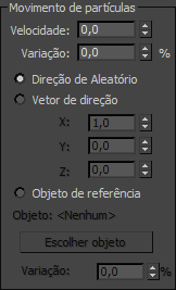 Variação aplica uma porcentagem de variação à direção quando você escolhe a opção Vetor de direção ou Objeto de referência. Este girador está indisponível e não tem efeito quando você escolhe Direção aleatória.