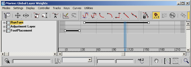 A faixa para uma camada é especificada pelo primeiro e último quadro-chave em qualquer trilha para qualquer peça do rig. Se uma faixa se estender antes do início ou além do fim da animação, um dos ossos do rig poderá ter quadros-chave anormais. O 3ds Max cria um quadro-chave no quadro 0 sempre que você cria quadros-chave (utilizando Chave automática) de um objeto pela primeira vez. Isso pode criar um quadro-chave indesejado.