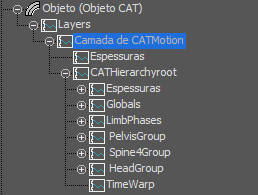 Os controladores espelham exatamente a hierarquia do Editor de CATMotion. Cada controlador está visível e cada camada predefinida está presente.