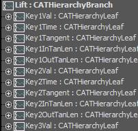 2. Clique em Curve Editor. A Track View é aberta para mostrar todos os parâmetros do controlador selecionado.