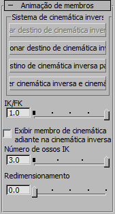 A Implementação de Animação de membros permite acesso às configurações de Cinemática inversa e Cinemática para frente para os membros.
