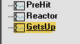 Gerenciador de camadas suspensa, clique em Abre o editor de curva para a espessura de camada global, mostrando as camadas existentes para rig. A ilustração a seguir mostra três camadas: PreHit, Reactor e GetsUp.