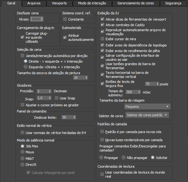 - As versões anteriores do 3ds Max usavam um método menos preciso de cálculo dos normais de vértice. Para utilizar o método das versões R1 a R4 do 3ds Max, ative esta caixa de seleção para a exibição compatível de arquivos de cena anteriores.