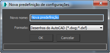 - Na caixa de diálogo Nova predefinição de configurações, insira um nome para sua predefinição.
