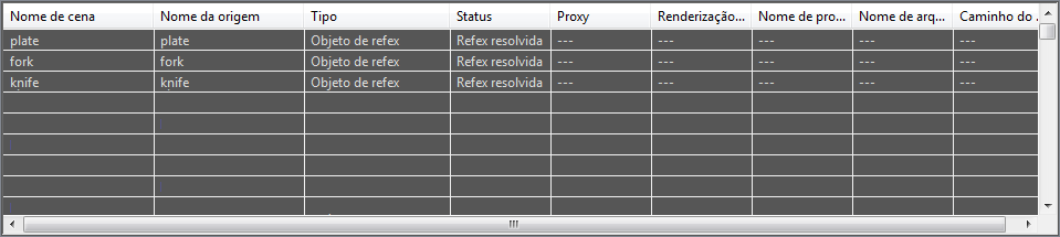 A lista Entidades XRef inclui as seguintes informações para cada entidade XRef: