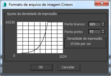 Representa a função de transferência da densidade de impressão (registro de 10 bits) para um linear de 16 bits com o ponto branco mapeado para um valor do código máximo de 65535.