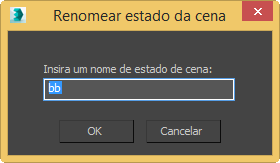 Insira um nome no campo Nome para o estado de cena realçado. Clique em OK para aceitar as alterações ou em Cancelar para fechar a caixa de diálogo sem renomear o estado de cena.
