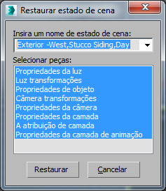 Abre a caixa de diálogo Restaurar estado de cena para o estado de cena selecionado.
