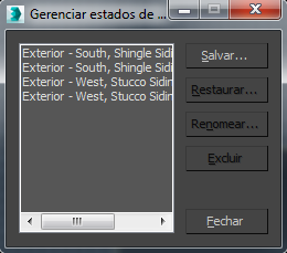 A caixa de diálogo lista todos os estados de cena salvos no arquivo MAX.