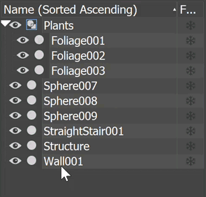 Edite hierarquias com o Scene Explorer no modo Classificar por hierarquia: