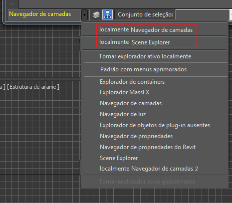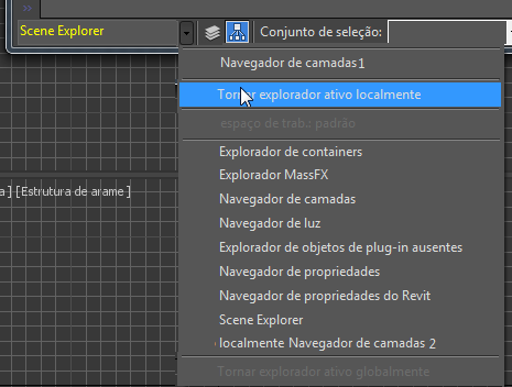 - Em qualquer global de Scene Explorer, clique na seta situada à direita do campo de texto na parte inferior esquerda da caixa de diálogo e selecione Tornar ativo Explorer local.