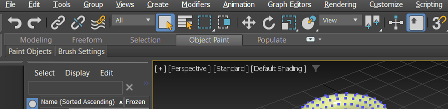 A guia Forma livre contém ferramentas para a criação e modificação de geometria do polígono por meio de"pintura" nas viewports. Além disso, o painel Padrões disponibiliza a gravação e o carregamento das configurações de pincel.