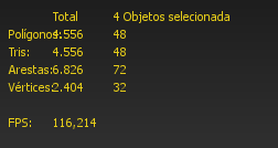 A primeira coluna lista as estatísticas para toda a cena, enquanto a segunda só faz referência aos objetos selecionados.