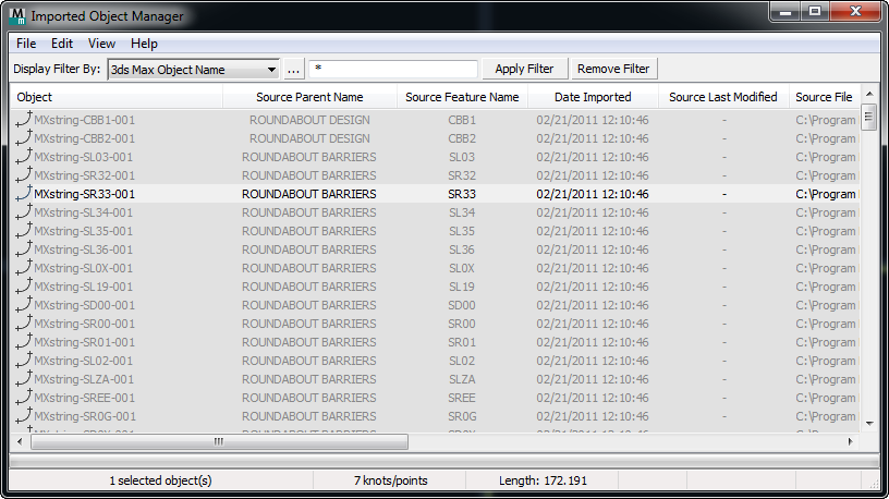- Nome de objeto do 3ds Max Lista somente os objetos que correspondem a uma máscara de nome de objeto completa ou parcial do 3ds Max.