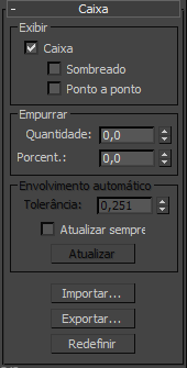 Esses controles permitem ajustar o tamanho da câmara como um todo ou em uma seleção de subobjeto caso um seja escolhido (consulte Implementação Geometria de referência (modificador Projeção)).