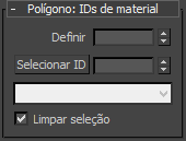 Permite atribuir um determinado número de ID de material a polígonos selecionados a serem usados com materiais de vários objetos/subobjetos e outras aplicações. Utilize o controle giratório ou insira o valor a partir do teclado. O número total de IDs 65,535 está disponível.