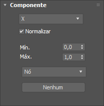 O termo "componente" refere-se ao componente X, Y, ou Z de um vetor (ou, neste caso, de uma posição de vértice). Isso torna a criação de um gradiente para os valores de Z em uma malha muito mais fácil do que a normalização da posição Z de uma entrada de vértice. O operador Espaço do componente é semelhante ao operador Espaço XYZ, mas fornece somente dados flutuantes.
