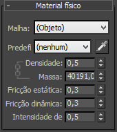 - A espessura do corpo rígido, medido em kg (quilogramas). A alteração deste valor atualiza automaticamente a densidade do objeto, com base no seu volume.