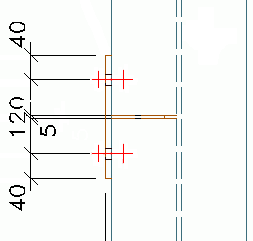 Optionally, dimensions for bolt and hole groups on secondary parts can be grouped. This option creates a dimension line for each group and dimensions the objects in the group.