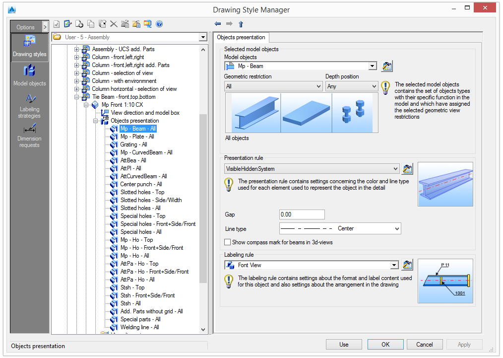 Each objects presentation rule can be modified by defining the geometric restriction, depth position, presentation rule and labeling rule.