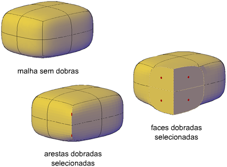 É possível restaurar um dobra para um estado suavizado que corresponda ao nível de suavização para o objeto. Se você remove um dobra que seja adjacente a outros sub-objetos dobrados, seus contornos são ajustados.