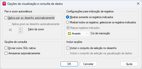 Controla como os objetos vinculados serão exibidos no desenho atual quando os registros correspondentes são selecionados na janela Visualizar dados.