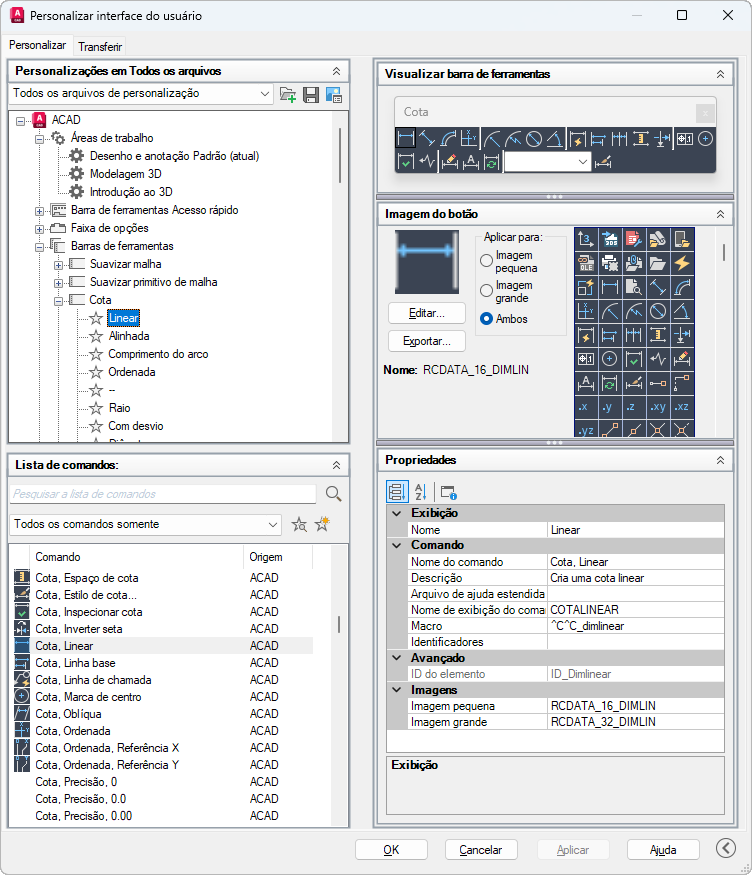 Nome - Exibe o nome do comando. O nome que inserido será a legenda ou o nome da dica de ferramenta exibida no programa.