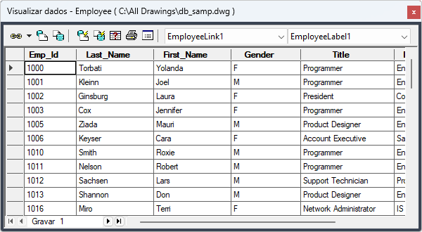 Indica os objetos gráficos no desenho atual do AutoCAD que estão vinculados ao registro do banco de dados selecionado.