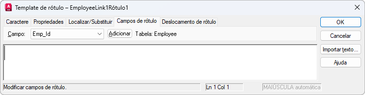 Especifica quais campos da tabela de banco de dados serão exibidos quando forem criadas legendas com base neste modelo.